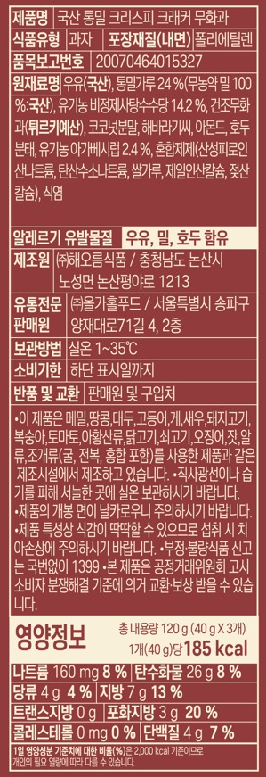 | 포장단위별 내용물의 용량(중량), 수량 | 120g x 3개 | 원재료명 및 함량 | 컨텐츠 참조 |