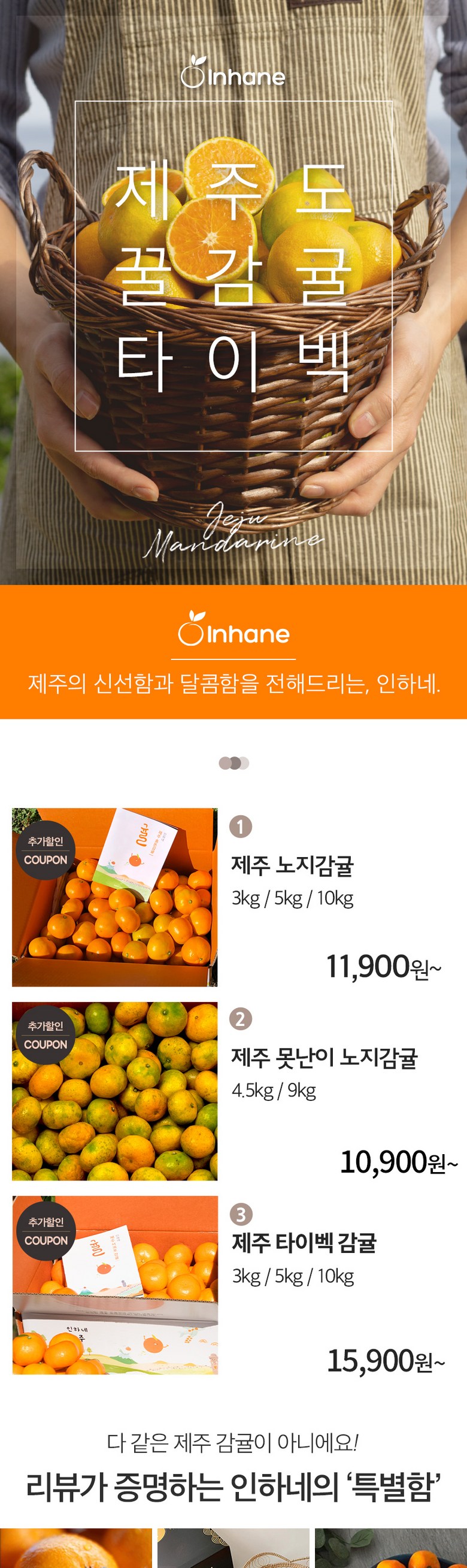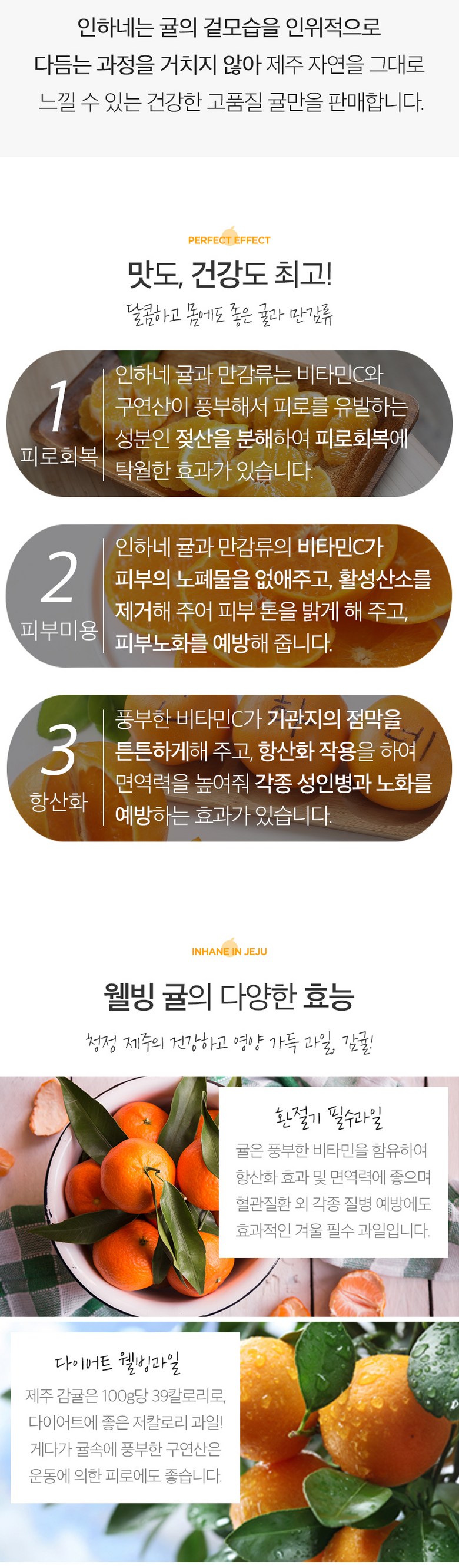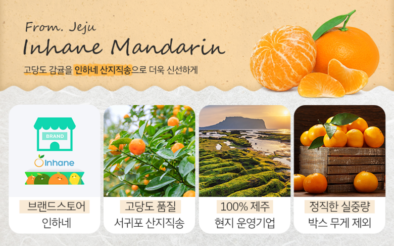| 품목 또는 명칭 | 인하네 제주 감귤 | 포장단위별 내용물의 용량(중량),수량,크기 | 정직한 인하네는 옵션별 박스 무게 제외 실중량입니다. |