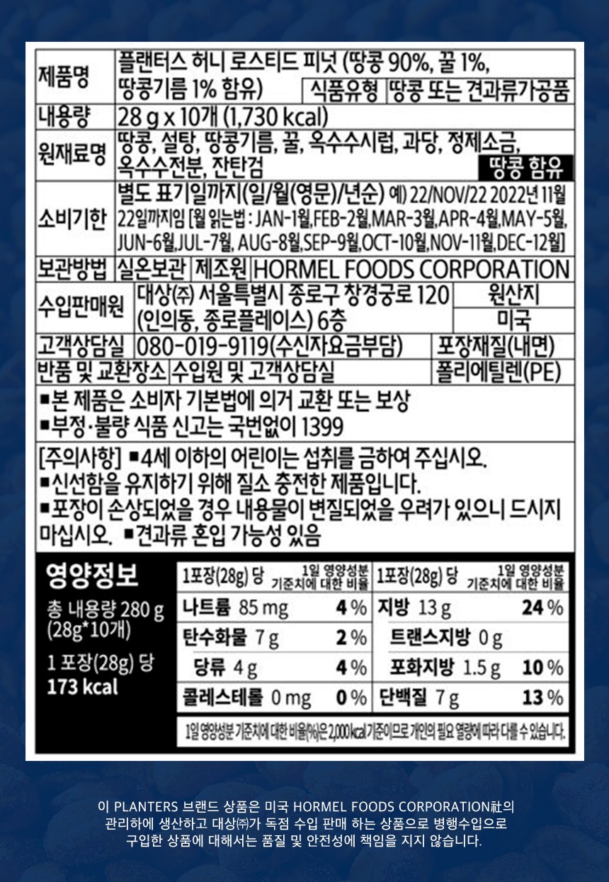 - 견과 종류: 땅콩