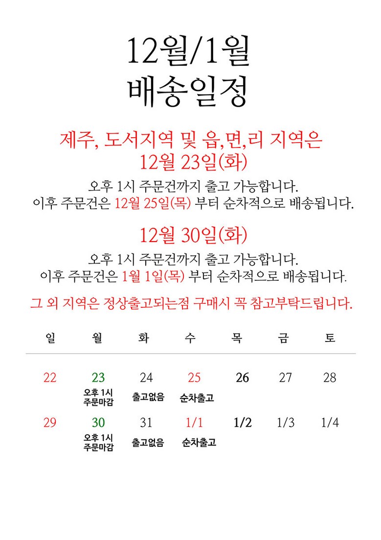 | 배송방법 | 신선/냉장/냉동 | 배송비 | 무료배송 - 도서산간 지역 배송불가 |
