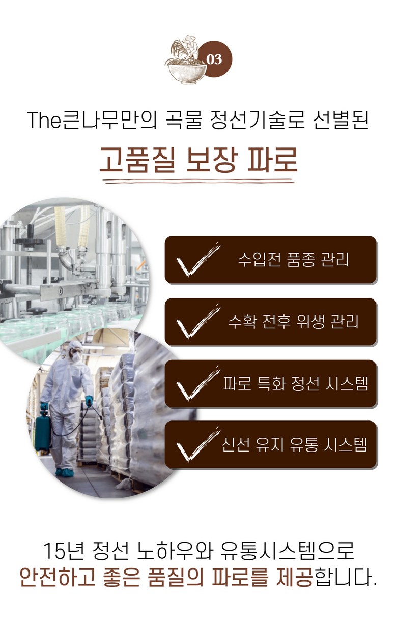 | 제조연월일, 소비기한 또는 품질유지기한 | 제조포장년월일 : 2025년 11월 10일 이후인 소분제품소비기한: 1차 농산물의 경우 소비기한의 표기 의무가 없습니다생산년도: 24년산 | 세부 품목군별 표시사항 | <농산물>1) 유전자 변형농산물 표시 -해당없음2) 지리적표시 -해당없음<수산물> 1) 유전자 변형수산물 표시 -2) 지리적표시 -<축산물>1) 등급 표시 -2) 이력관리 표시 유무 - |