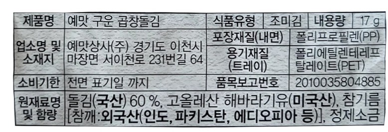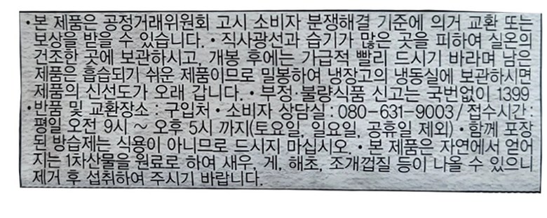 | 생산자 및 소재지 | 상품 상세페이지 참조 | 제조연월일, 소비기한 또는 품질유지기한 | 상품 상세페이지 참조 |
