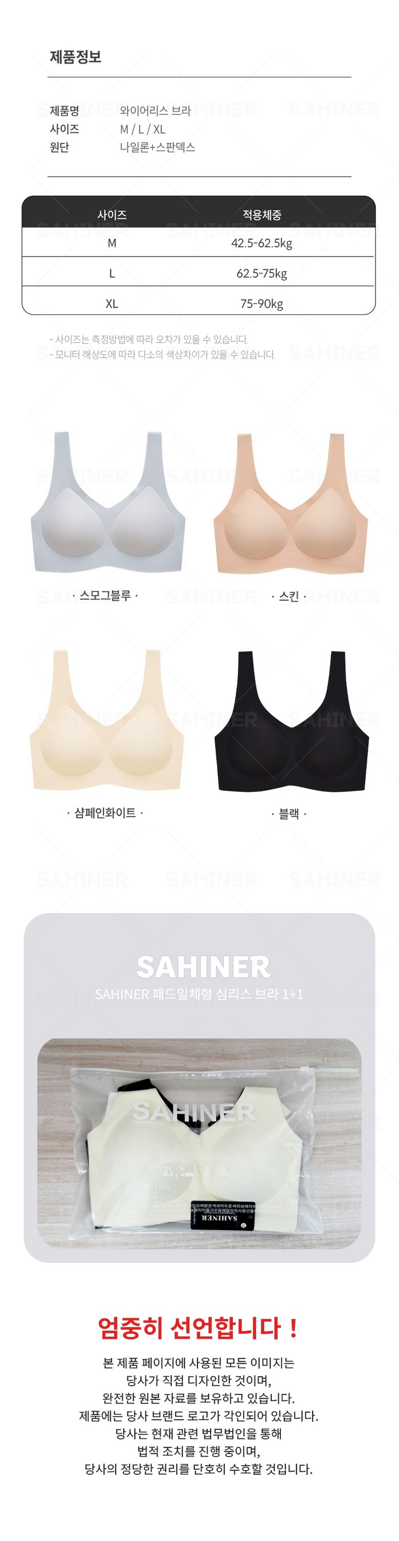 | 제품 소재 | 63% 폴리아미드 37% 스판 | 색상 | 블랙,화이트,스킨,블루 |