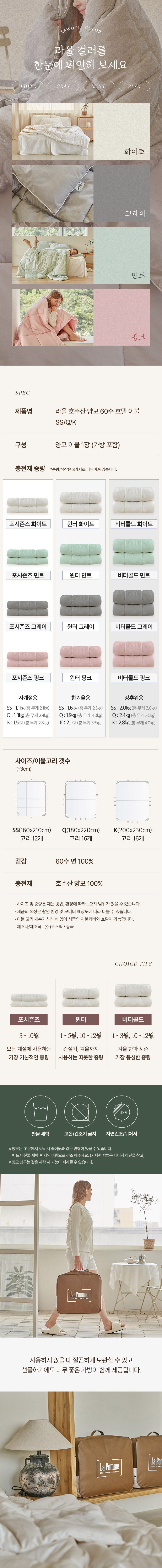 - 충전재: 양모/알파카/캐시미어