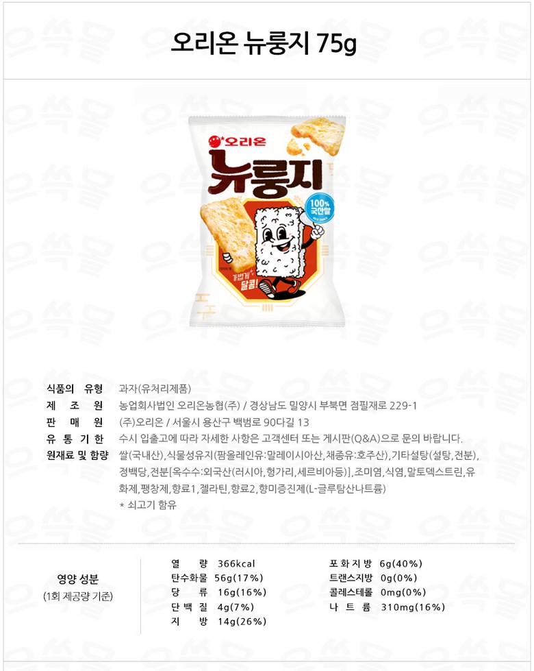 | 제품명 | 상품 상세페이지 참조 | 식품의 유형 | 상품 상세페이지 참조 |