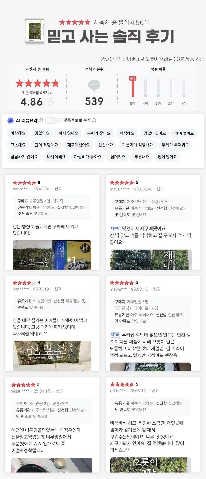 [해농 오롯이 재래김으로 만든 유투버 '스푼비'님의 영상]