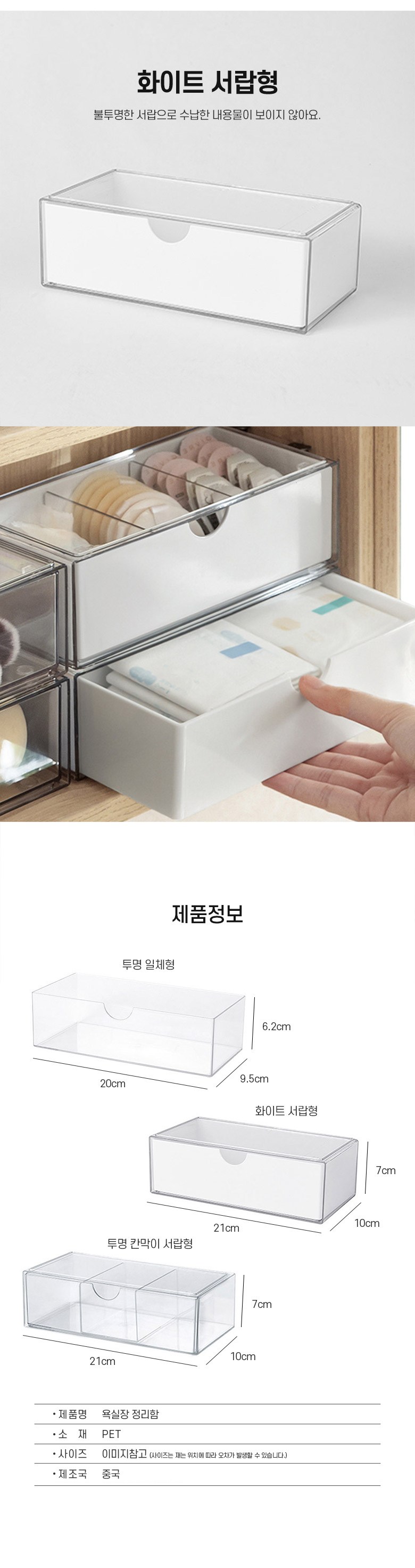 | 품명 및 모델명 | 욕실장 정리함 화이트 서랍형 | 인증/허가 사항 | 해당없음 |