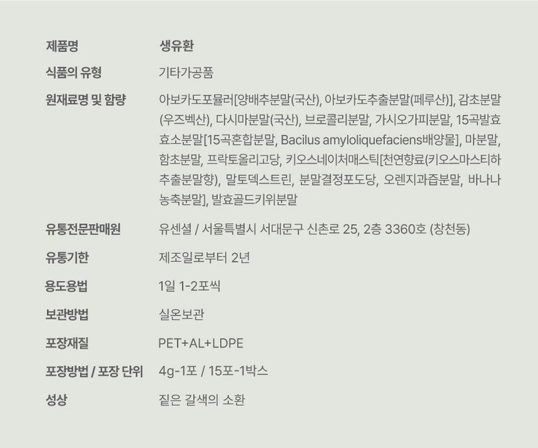 | 생산자 및 소재지 | 상품 상세페이지 참조 | 제조연월일, 소비기한 또는 품질유지기한 | 상품 상세페이지 참조 |