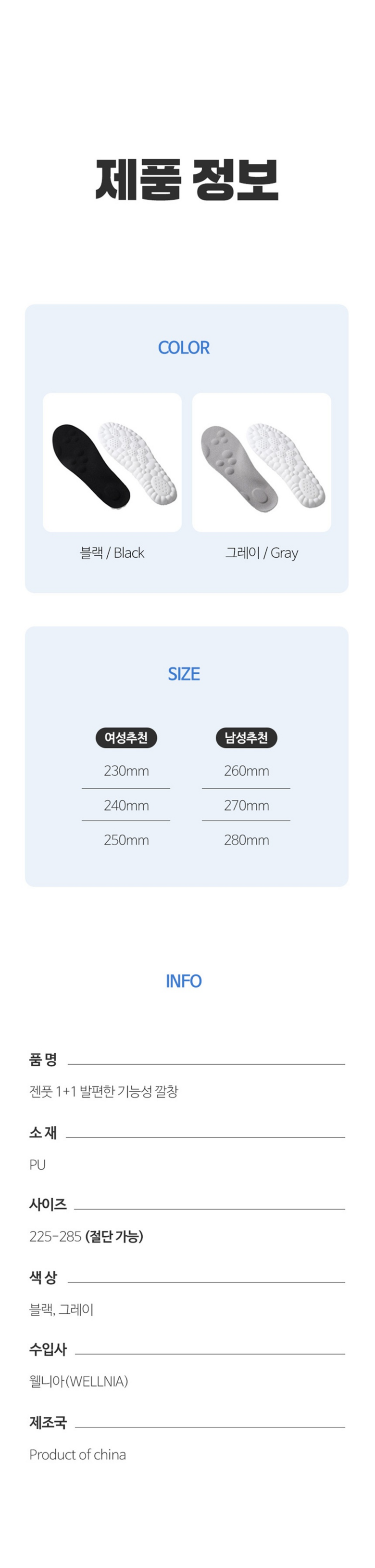 사이즈 × 수량: 250~255mm × 2세트