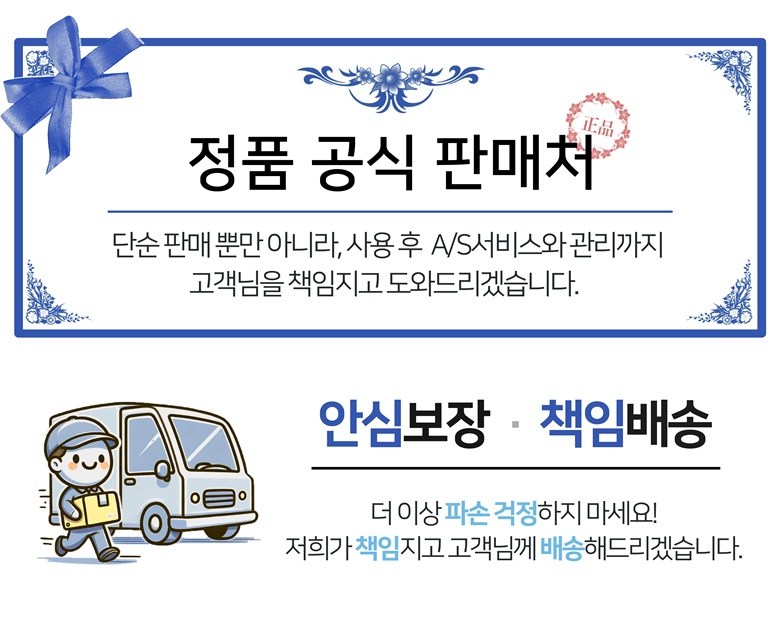 | 교환/반품 비용 (왕복비용) | 180,000원 - 단, 고객 변심의 경우에만 발생 - 도서산간 지역 배송불가 |