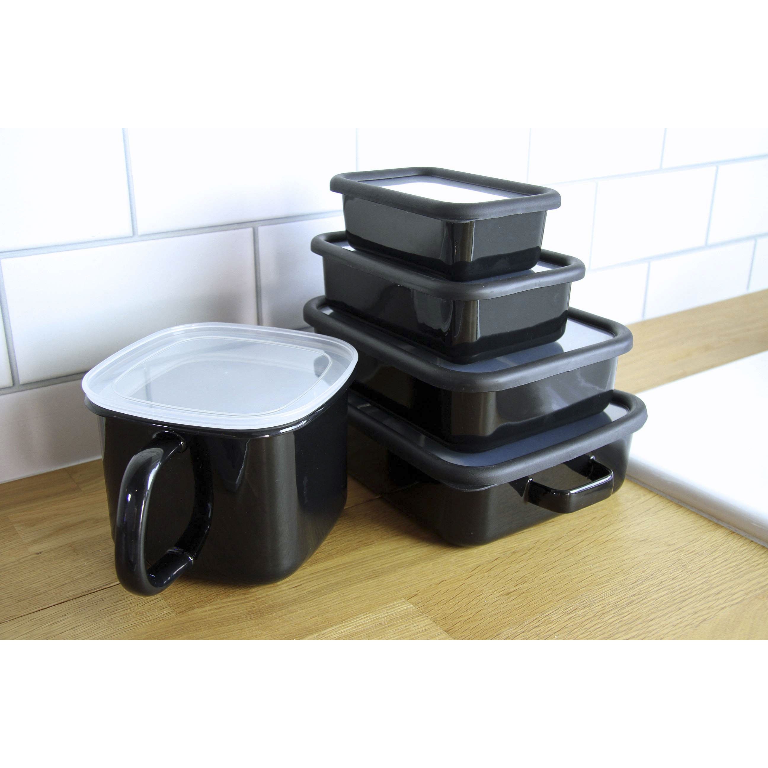 하나코 얕은 사각형 밀폐용기 블랙 XL