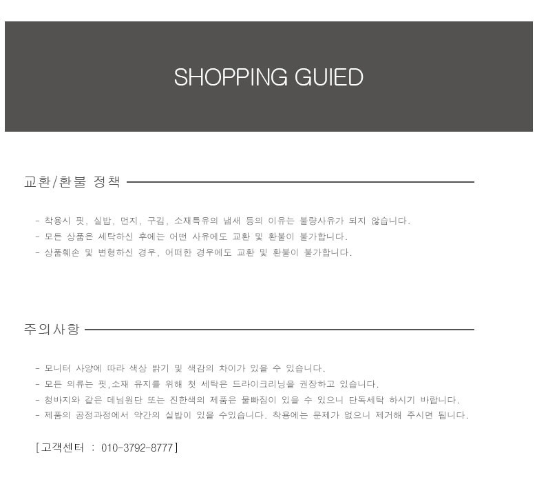 - ㆍ모니터 해상도의 차이로 인해 색상이나 이미지가 실제와 달라, 고객이 단순 변심으로 교환/반품을 무료로 요청하는 경우