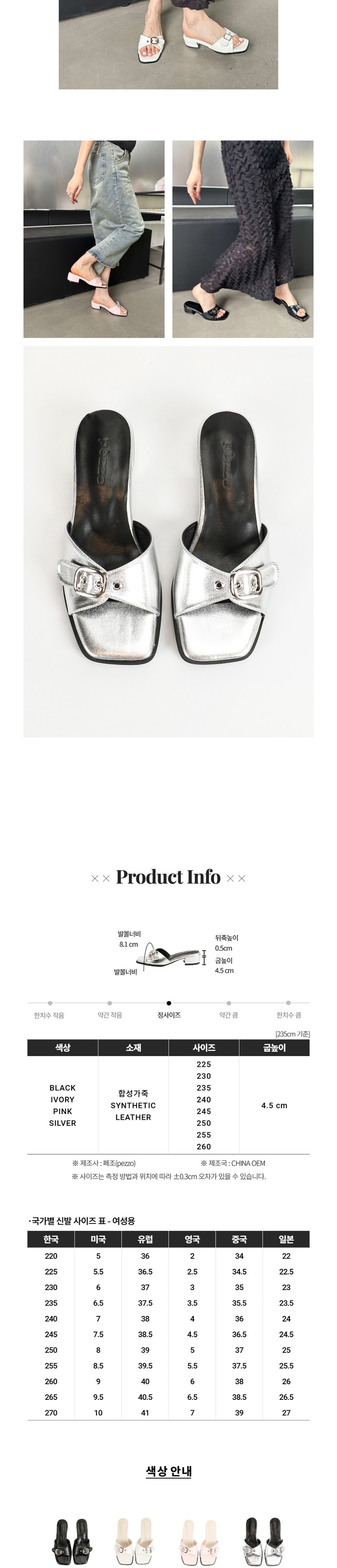 | 치수 | 225, 230, 235, 240, 245, 250, 255, 260 | 제조자(수입자) | 페조(PEZZO) |