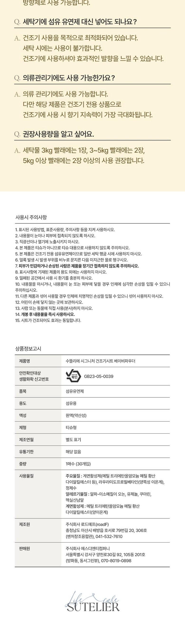 | 품목 및 제품명 | 상품 상세페이지 참조 | 용도(표백제의 경우 계열을 함께표시) 및 제형 | 상품 상세페이지 참조 |