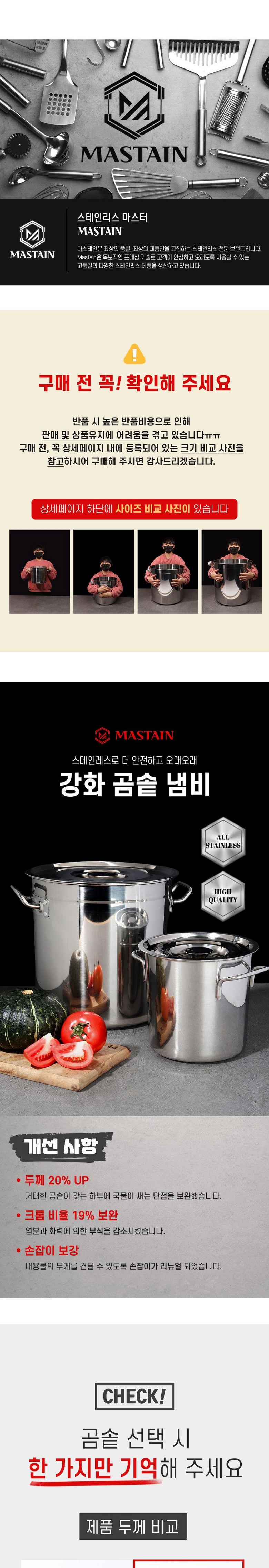 | 품명 및 모델명 | MASTAIN 강화 곰솥 냄비 | 재질 | 스테인레스스틸 |