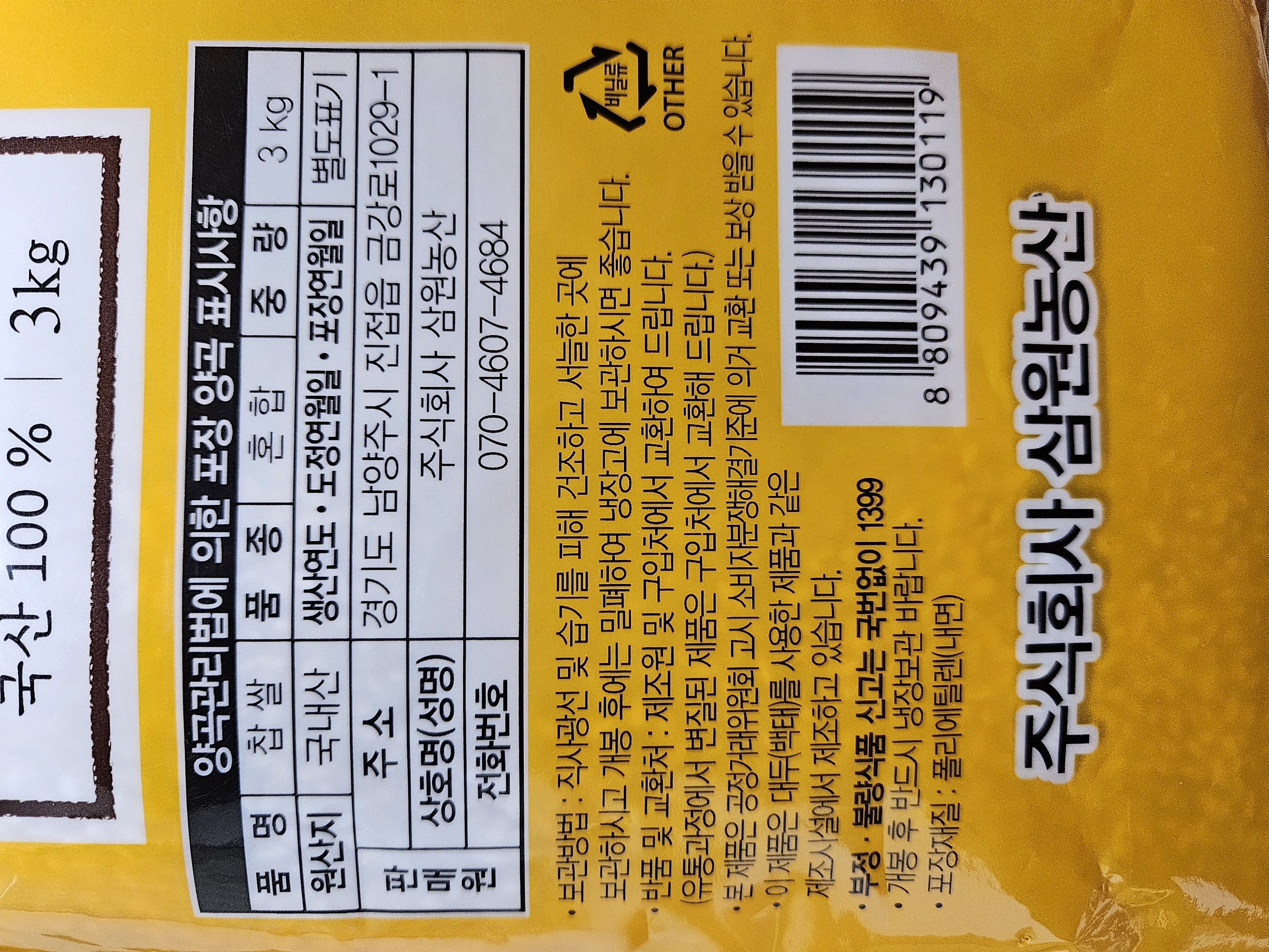 | 제조연월일, 소비기한 또는 품질유지기한 | 제조년월일 : 2025년 09월 01일 이후인 제조상품<br />생산일자 : 2024 | 세부 품목군별 표시사항 | 농수산물 : 유전자변형(해당 없음) / 지리적 표시사항(해당 없음) |