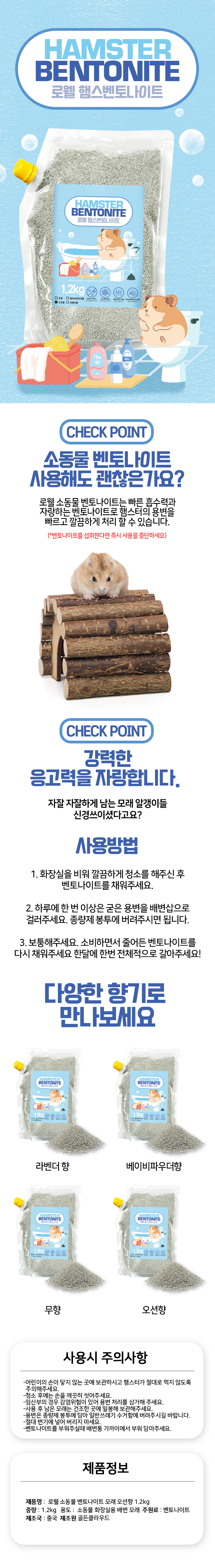 | 품명 및 모델명 | 로웰 햄스터 벤토나이트 1.2kg 오션향 2개입 | 인증/허가 사항 | 해당없음 |