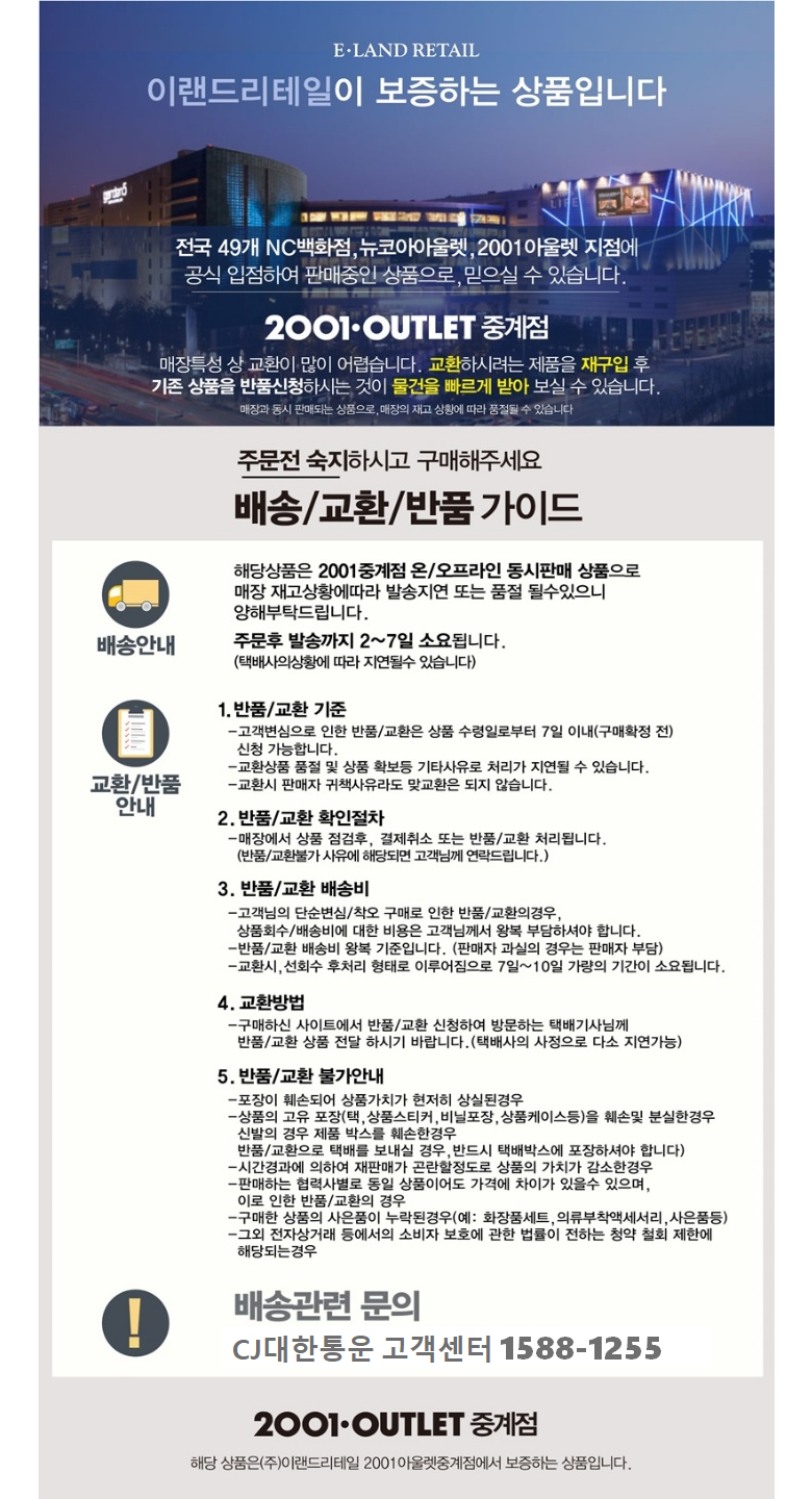 | 교환/반품 비용 (왕복비용) | 0원 - 단, 고객 변심의 경우에만 발생 - 도서산간 및 일부 지역 추가비용 발생 |
