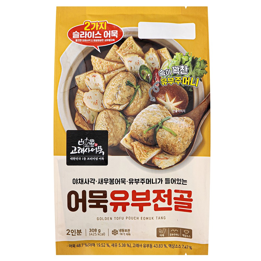 어묵 유부 전골로 나만의 작은 포차를 즐겨보세요. 물과 함께 끓이기만 하면 완성되니 간편한데요. 유부주머니와 2가지 모양의 슬라이스 어묵이 함께 들어있답니다. 탱글탱글하면서 부드러운 식감을 만끽해보세요. 뜨끈한 국물을 폭 떠서 먹으면 그만한 별미가 없을 거예요.