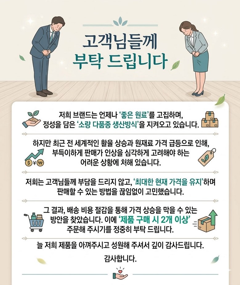 - ㆍ모니터 해상도의 차이로 인해 색상이나 이미지가 실제와 달라, 고객이 단순 변심으로 교환/반품을 무료로 요청하는 경우