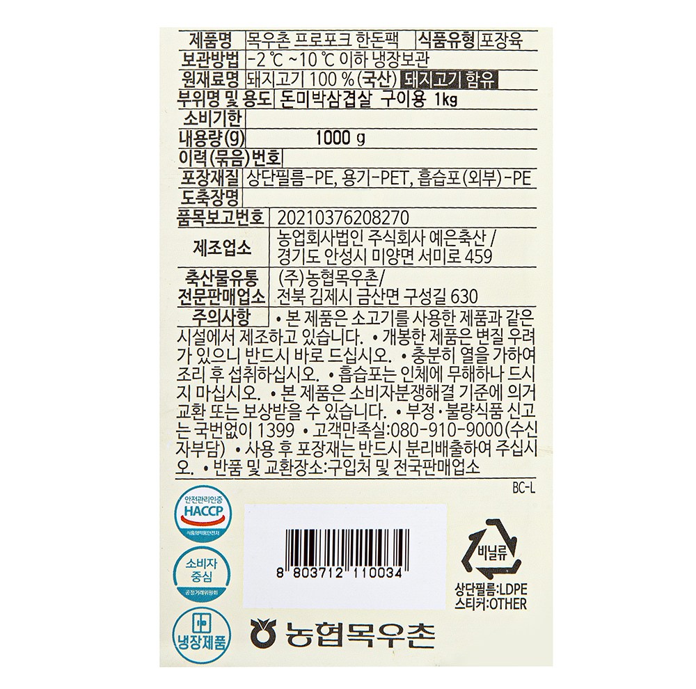 | 제조연월일, 소비기한 또는 품질유지기한 | 업데이트 예정 | 세부 품목군별 표시사항 | 축산물 등급표시 : 해당 없음 / 이력번호 표시유무 : 이력번호 표시제품임 |