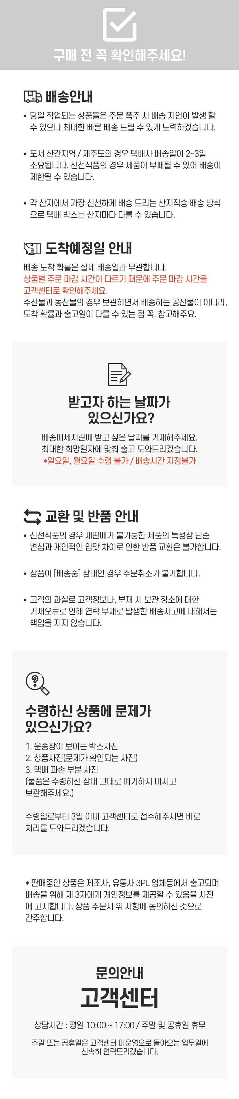 - ㆍ교환/반품에 관한 일반적인 사항은 판매자가 제시사항보다 관계법령이 우선합니다.