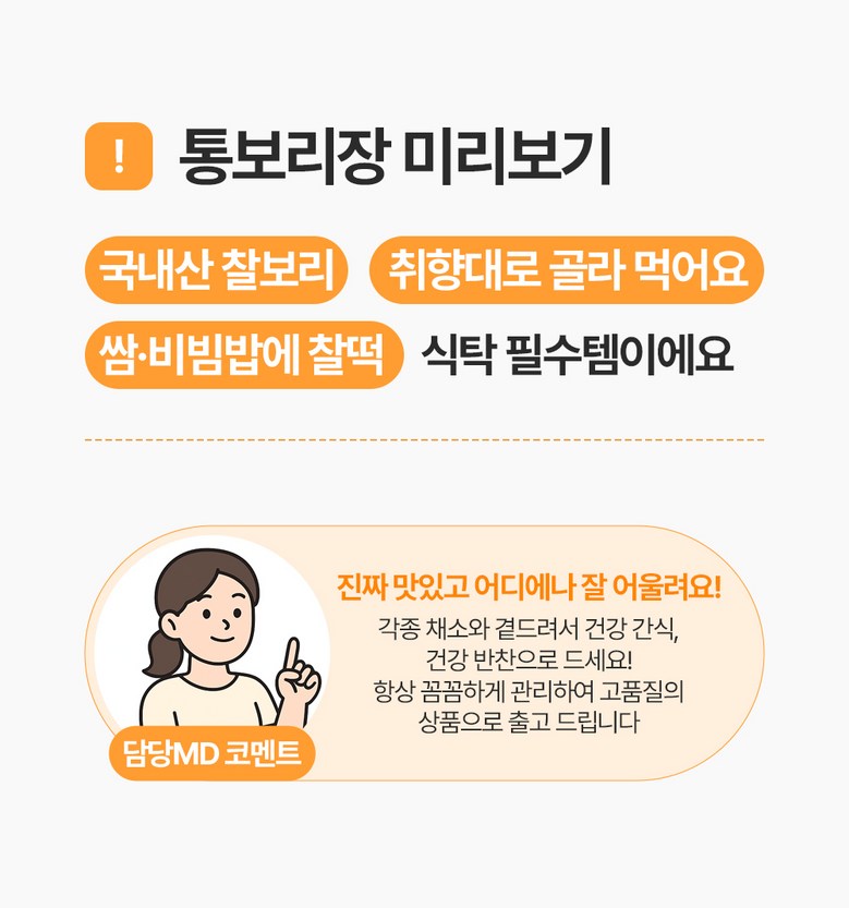 통보리장 오리지널은 쌈장처럼 바로 먹기 좋고,
