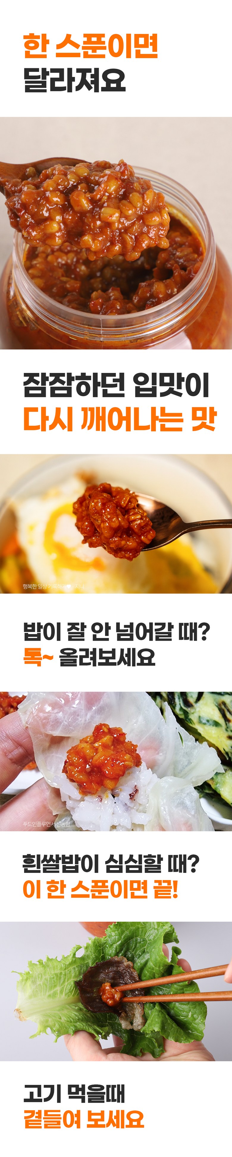 별도 양념 없이 바로 밥·쌈·반찬에 활용 가능합니다.