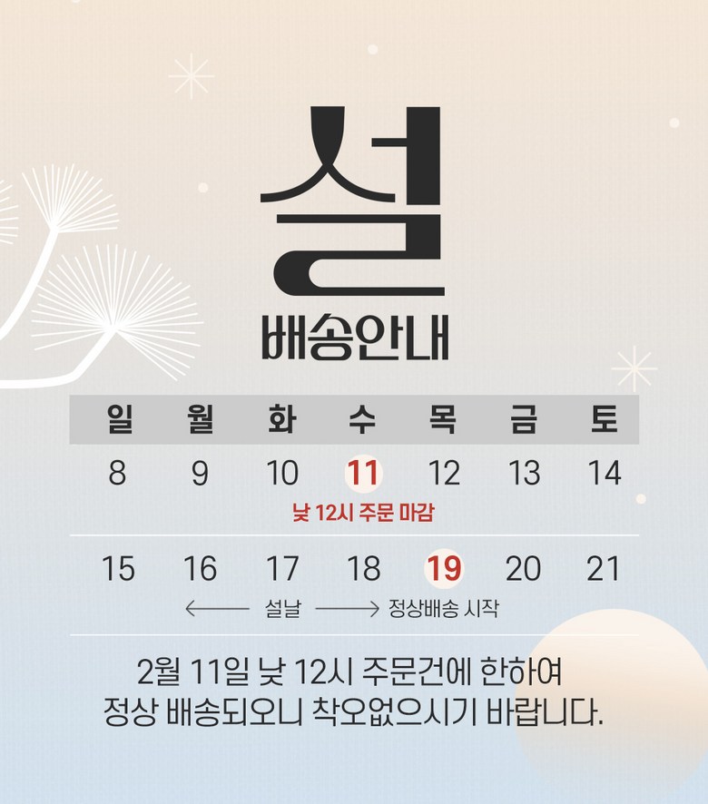 | 배송방법 | 순차배송 | 배송비 | 무료배송 - 도서산간 지역 배송불가 |