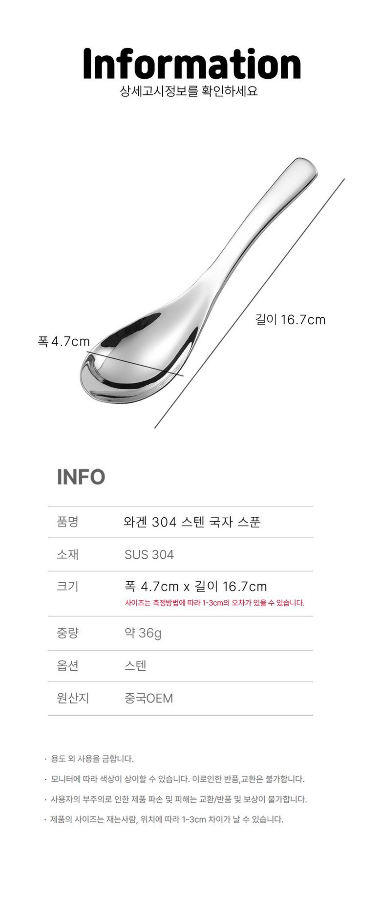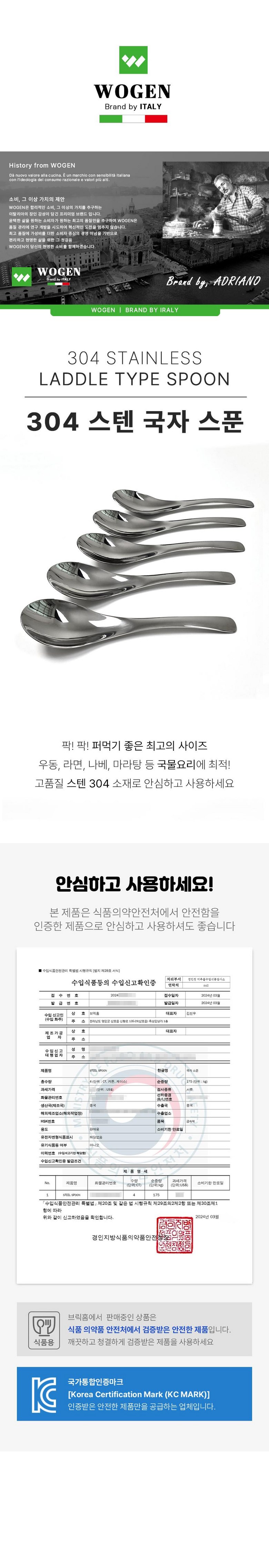 | 품명 및 모델명 | 와겐 스텐304 왕 숟가락 수저세트 | 인증/허가 사항 | 수입식품 등에 의한 정식 수입품 |