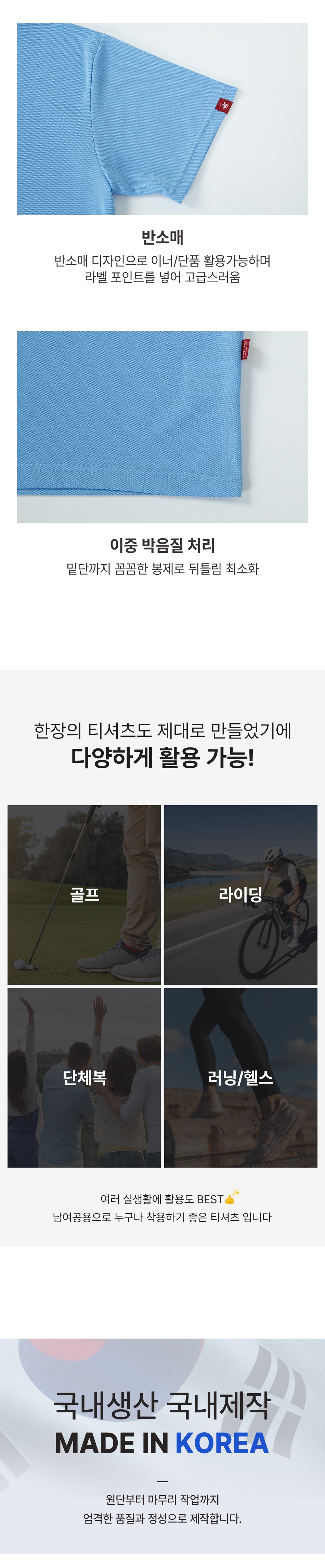 - 소매 길이: 반소매(어깨~팔꿈치 길이)
