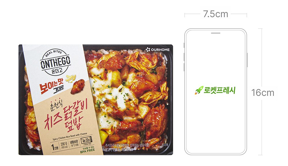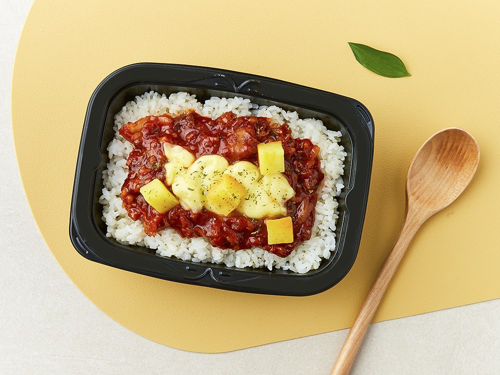 바쁜 일상 중 간편하게 즐기는 온더고의 치즈닭갈비 덮밥 도시락이에요. 야들야들한 닭고기와 양배추, 고구마 등을 매콤하게 볶았죠. 씹으면 씹을수록 달착지근한 풍미 역시 느껴진답니다. 여기에 치즈를 솔솔 뿌려 마무리했으니, 전자레인지로 손쉽게 조리해 즐겨보세요.
