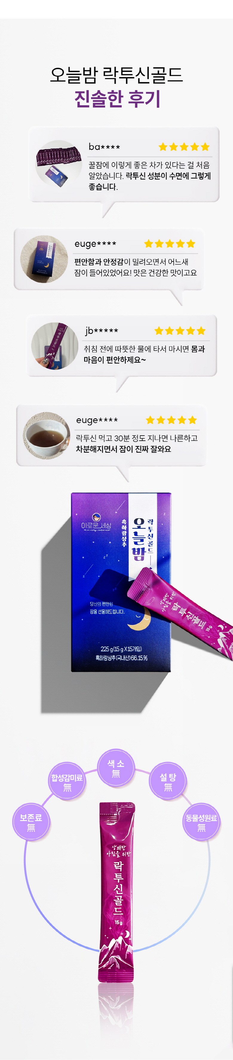 | 포장단위별 내용물의 용량(중량), 수량 | 15g x 15개입 (225g), 2박스 | 원재료명 및 함량 | 상품 상세페이지 참조 |