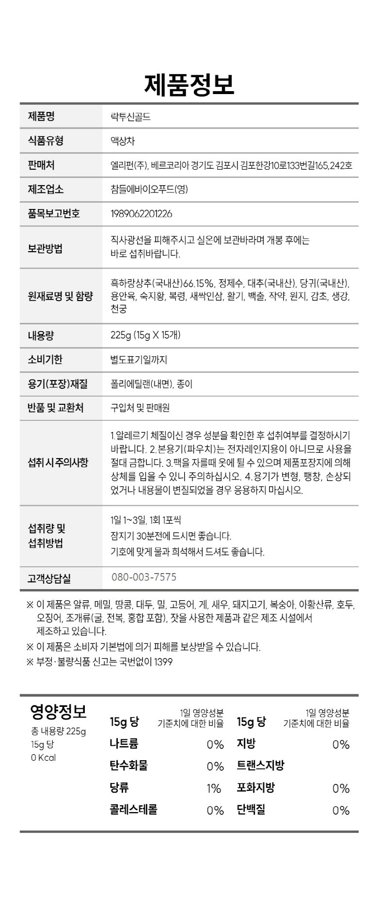 | 제품명 | 락투신골드 | 식품의 유형 | 액상차 |