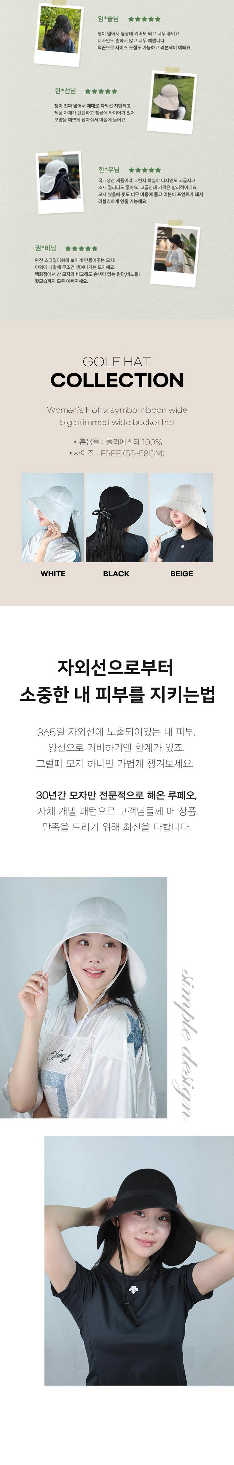 | 종류 | 루페오 여성 핫픽스 빅 와이드 심볼 리본 포인트 챙넓은 골프 버킷햇 벙거지 모자 | 소재 | 폴리에스터 100% |