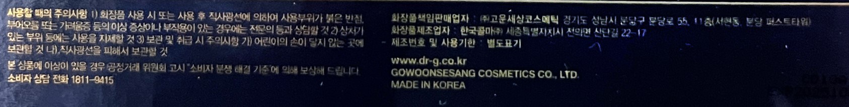 | 화장품제조업자, 화장품책임판매업자 및 맞춤형화장품판매업자 | 컨텐츠참조 | 제조국 | 컨텐츠참조 |