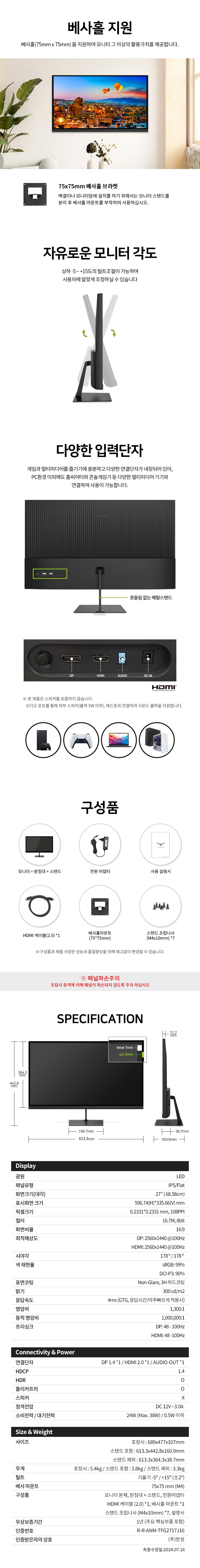| 품명 및 모델명 | LCD Monitor / TFG27Q10P | KC 인증정보 | 유/KC마크, R-R-ANM-TFG2717J16 |