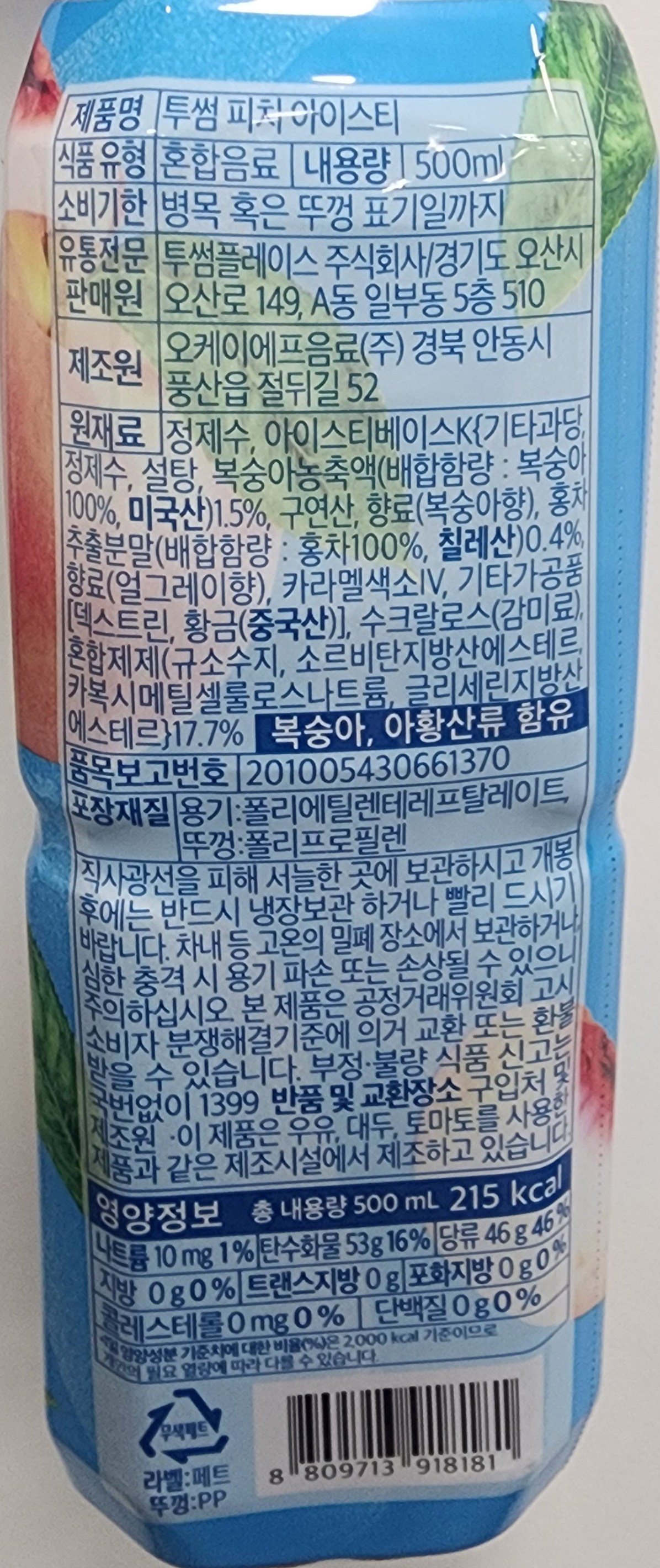 | 포장단위별 내용물의 용량(중량), 수량 | 500ml x 48개 | 원재료명 및 함량 | 컨텐츠 참조 |