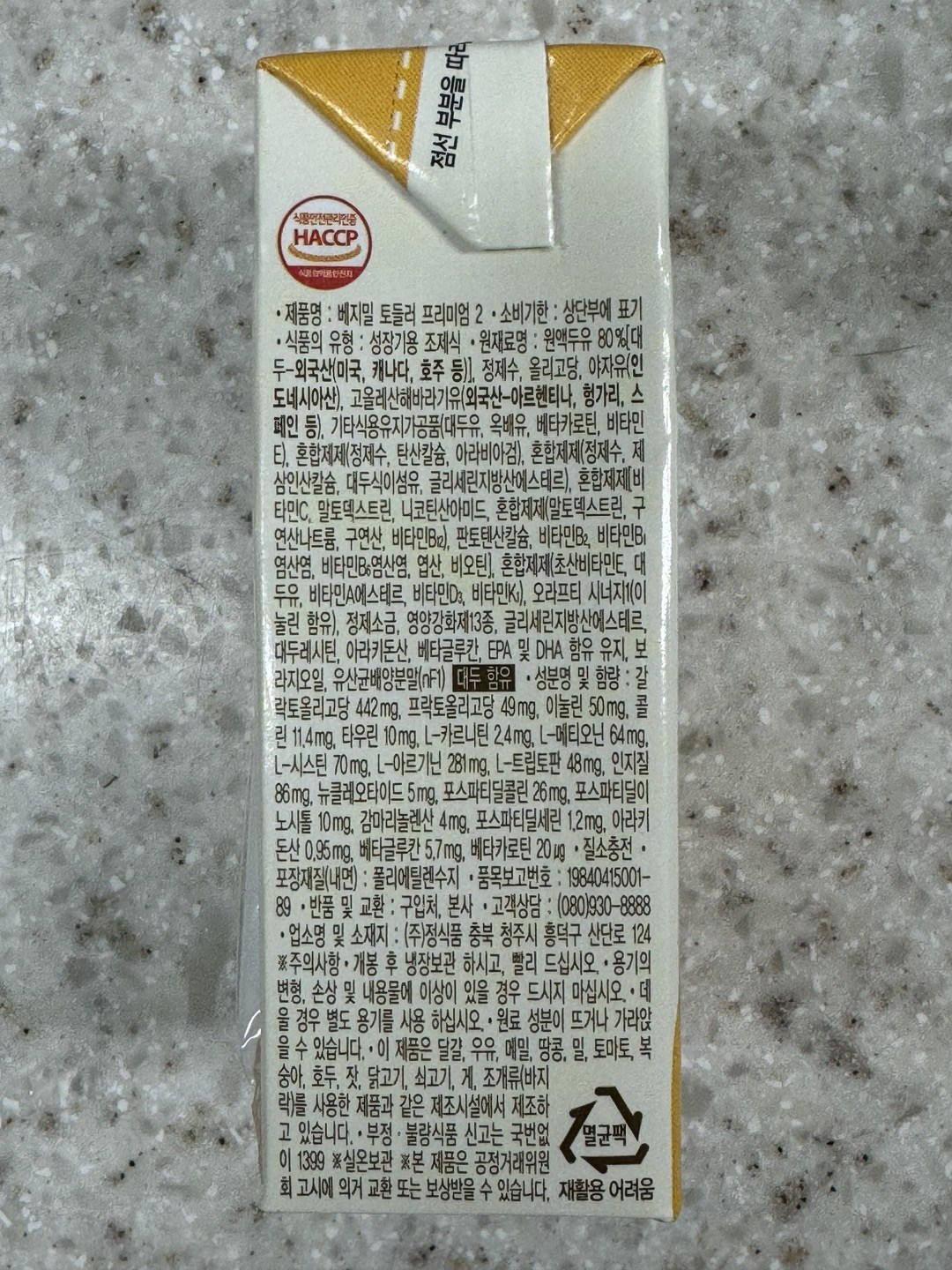 | 포장단위별 내용물의 용량(중량), 수량 | 190ml, 16팩 | 원재료명 및 함량 | 컨텐츠 참조 |