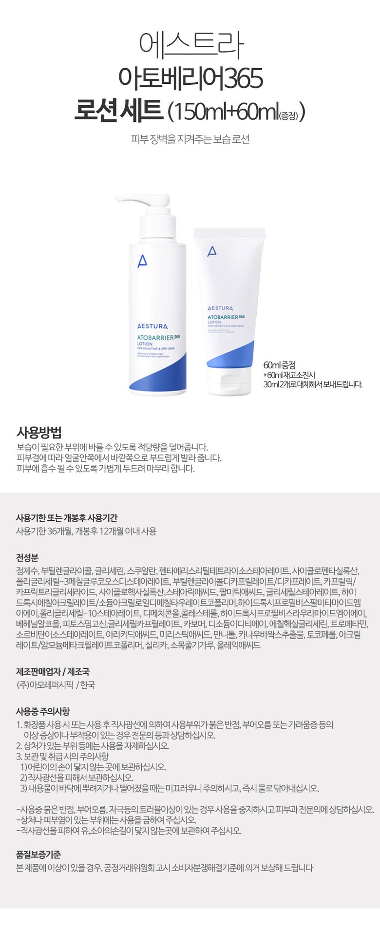 증정60ml 재고소진시 증정30ml*2개로 보내드립니다.