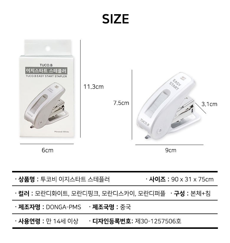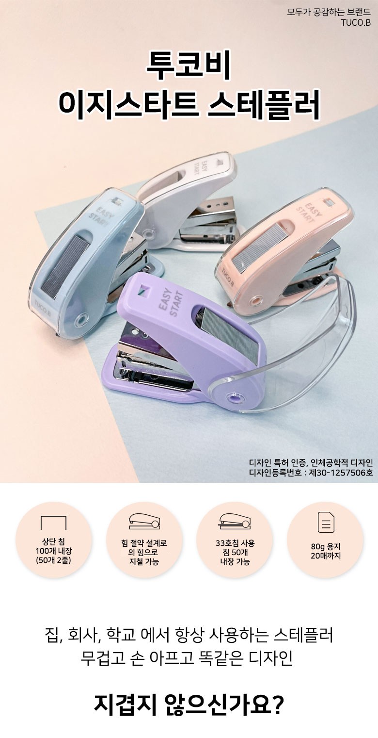 | 품명 및 모델명 | 투코비 이지스타트 스테플러 모란디 화이트 | 인증/허가 사항 | 해당없음(14세이상) |