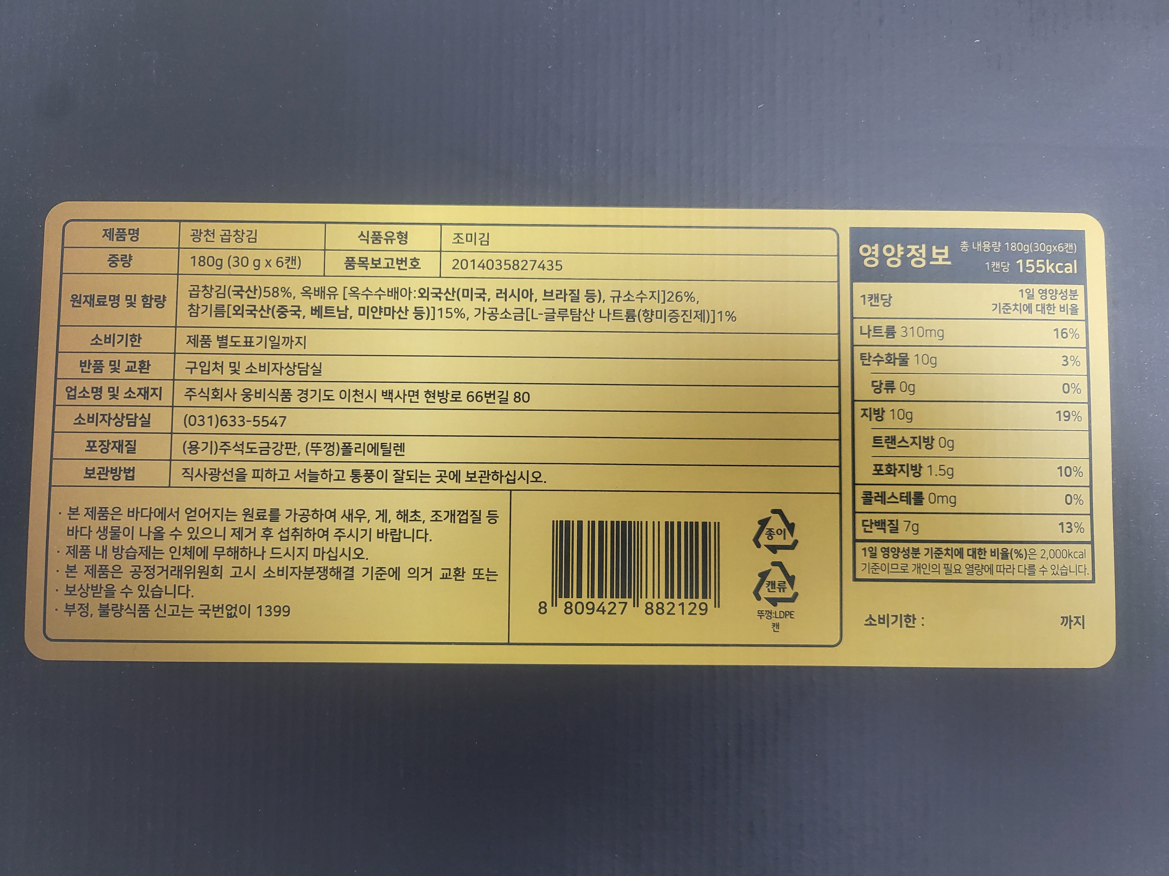 | 생산자 및 소재지 | 컨텐츠 참조 | 제조연월일, 소비기한 또는 품질유지기한 | 소비기한(또는 유통기한) : 2026년 12월 10일 이거나 그 이후인 상품 제조년월일 : 2025년 12월 11일 이후인 제조상품 |