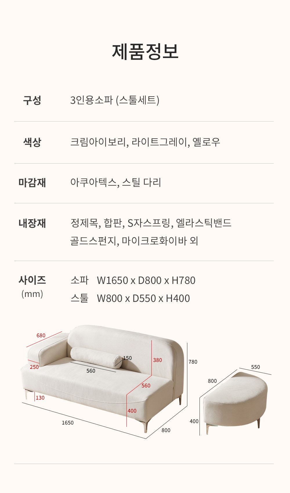 | 품명 | 우아미가구 쿠잉 아쿠아텍스 3인용 소파 + 스툴 세트 | KC 인증정보 | 해당없음 |