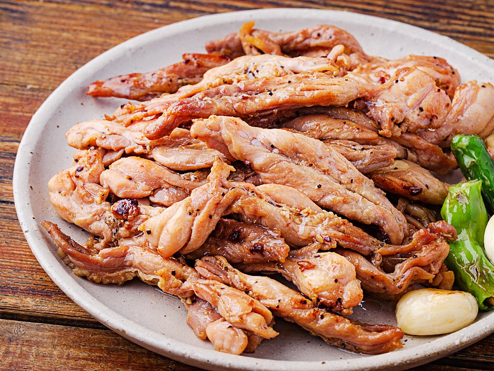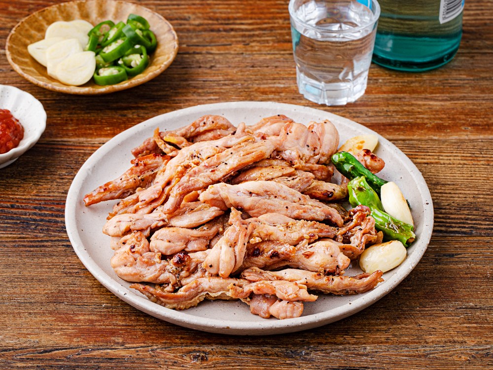 굽기만 하면 완성되는 닭목살 소금구이예요. 닭고기 목살은 쫄깃쫄깃하고 탱탱한 식감이 매력적인 부위인데요. 씹으면 씹을수록 고소하면서도 짭조름한 풍미가 새어 나온답니다. 술 한 잔에 곁들일 맛깔스러운 안주로 손색없을 거예요.