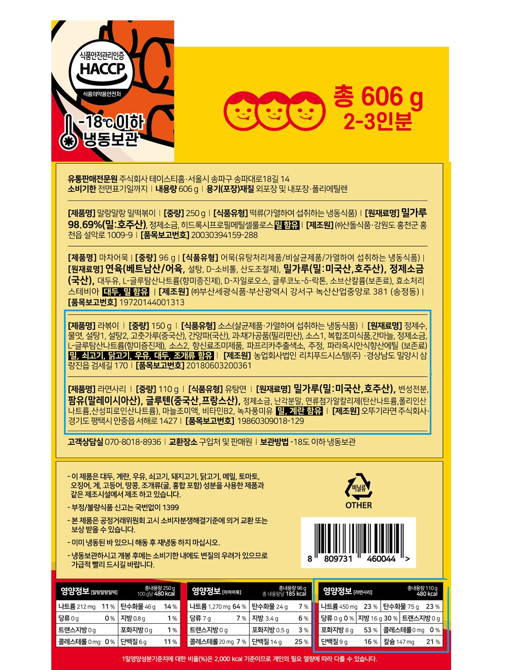 떡, 어묵, 소스, 라면사리 동봉