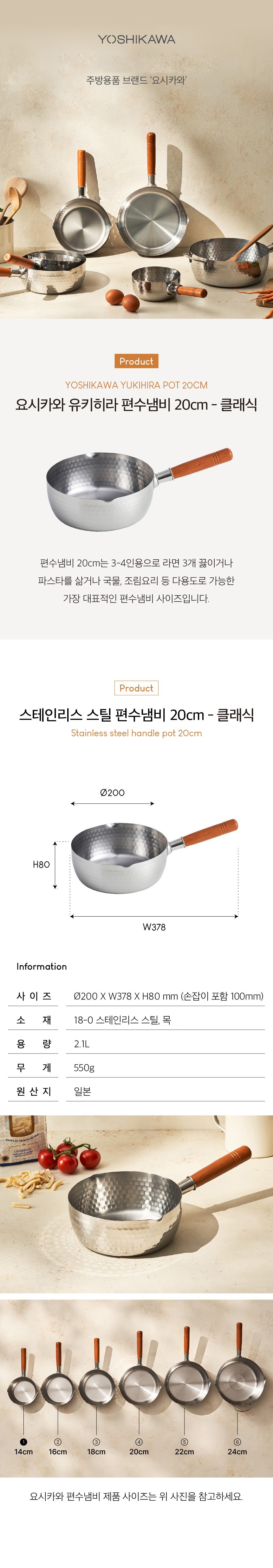 | 품명 및 모델명 | 요시카와 유키히라 편수냄비 클래식 20cm | 재질 | 컨텐츠 참조 |
