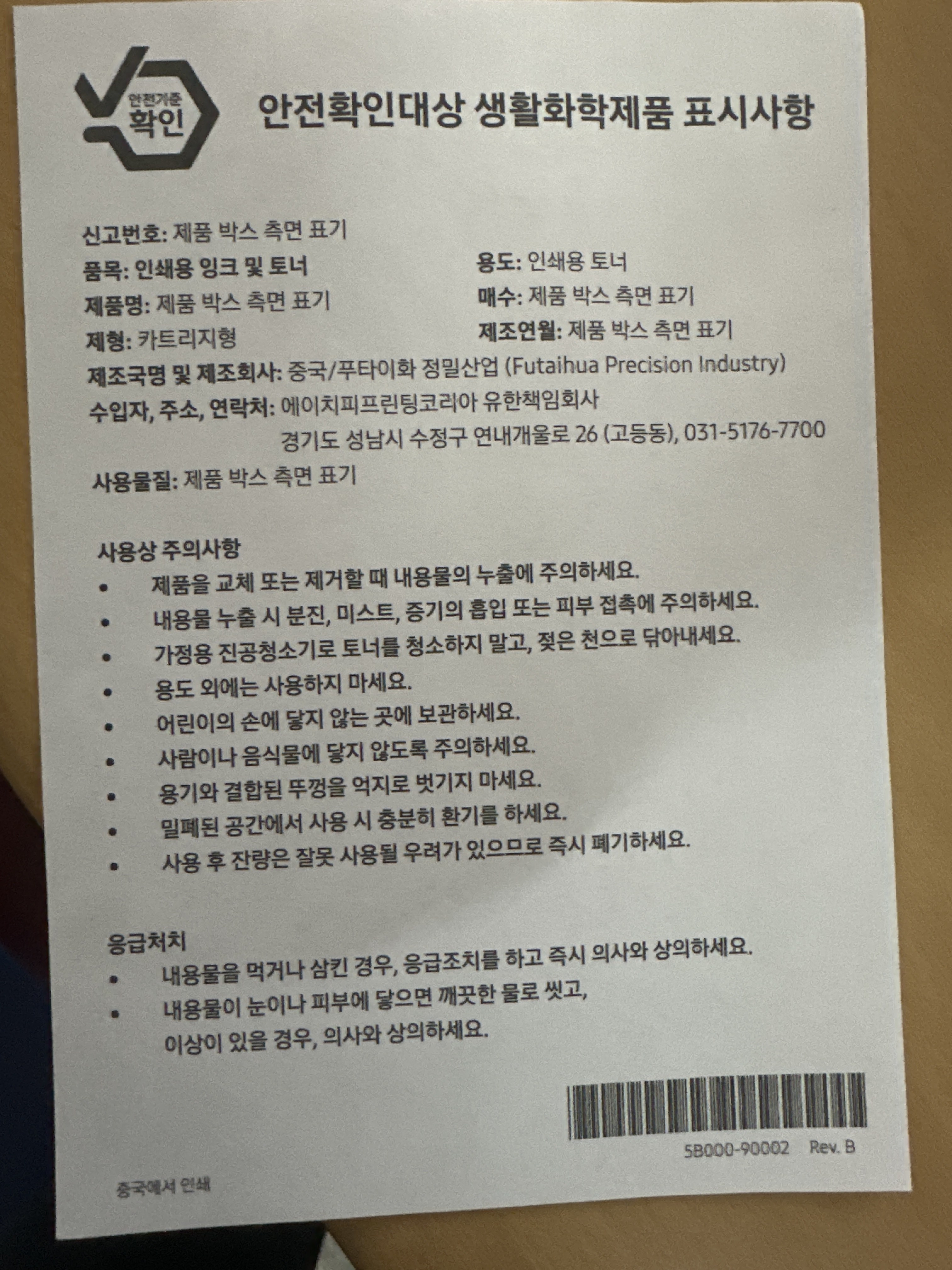 | 출시년월 | 2019년 10월 | 제조자(수입자) | 프린터 : Weihai Xinxing Digital Electronics Co.,Ltd. / HPPK / 토너 : 컨텐츠참조 |