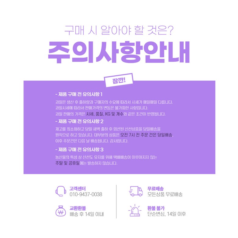 - ㆍ모니터 해상도의 차이로 인해 색상이나 이미지가 실제와 달라, 고객이 단순 변심으로 교환/반품을 무료로 요청하는 경우