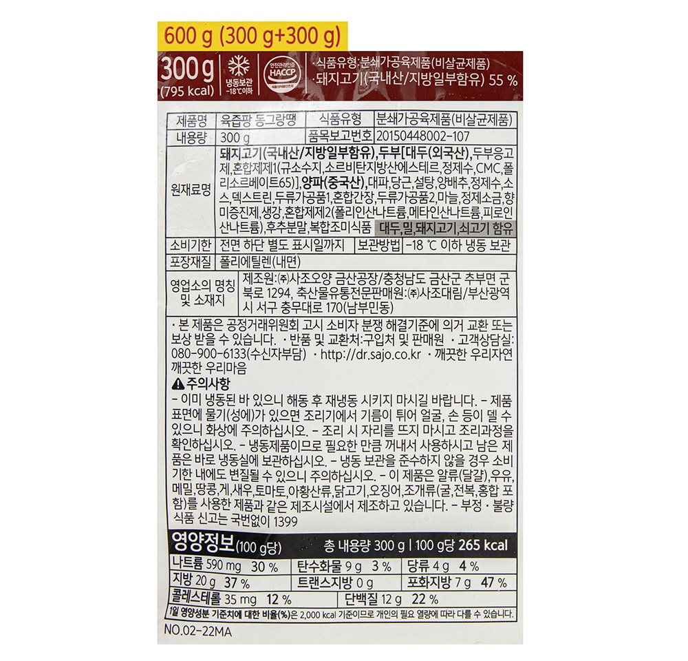| 포장단위별 내용물의 용량(중량), 수량 | 300g x 4개 | 원재료명 및 함량 | 컨텐츠 참조 |