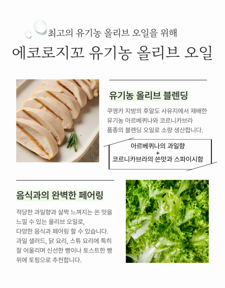 풍부한 올리브향으로 요리의 풍미가 한단계 업그레이드 됩니다 ^^
